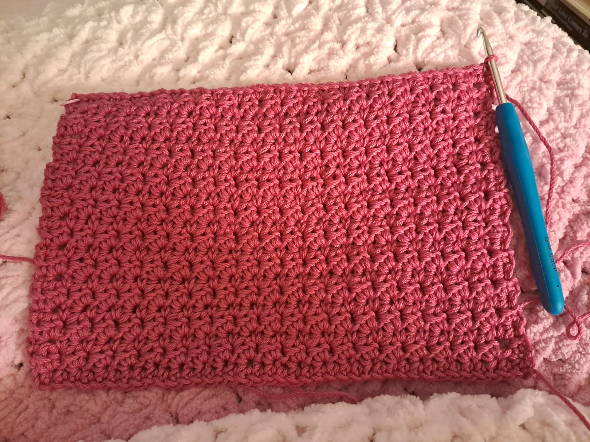 Started another crochet project. This one is a bit of an experiment. I've seen bags you can make out of one long rectangle, and I want to see if I can do it!