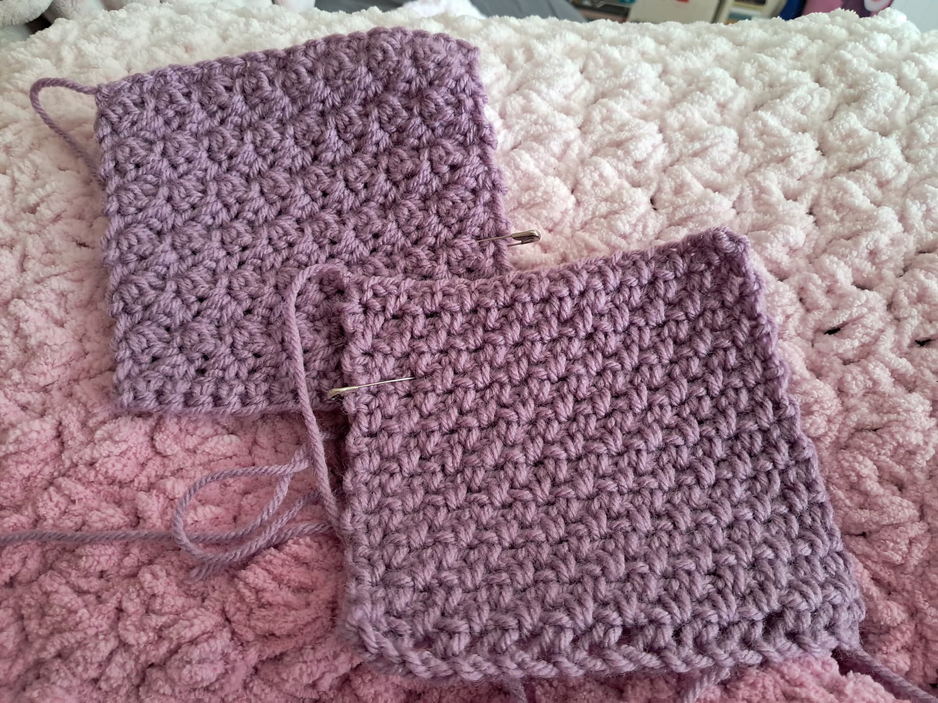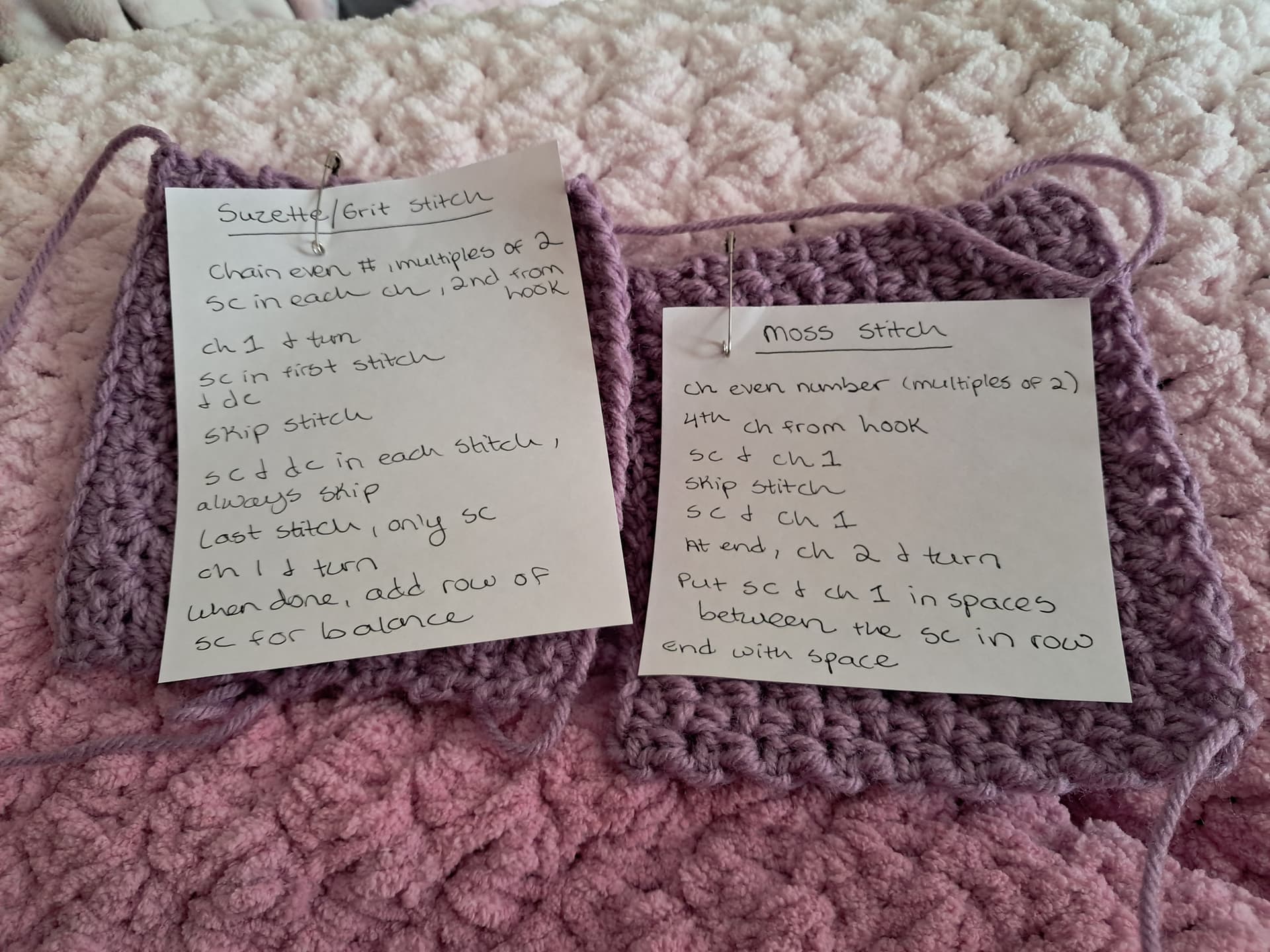 I love crocheting little stitch samples. I have a binder where I put the samples. It's fun to learn new stitches! I spent some time today making samples for the moss stitch and the suzette stitch.