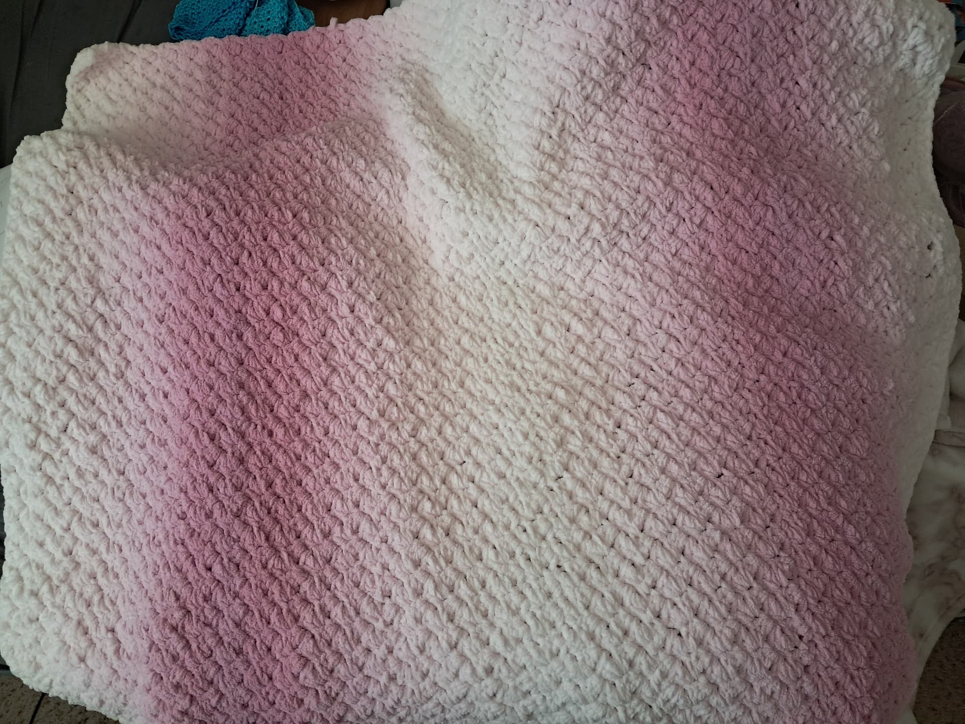 This blanket was created in honor of my mother. I took up crochet after her death. This is what I would have made for her if she were alive. She loved the color pink. I named it the Susie Q blanket because that's a nickname that her mom gave her as a little girl. Every time I wrap this blanket around me, I will think of my beautiful mother.